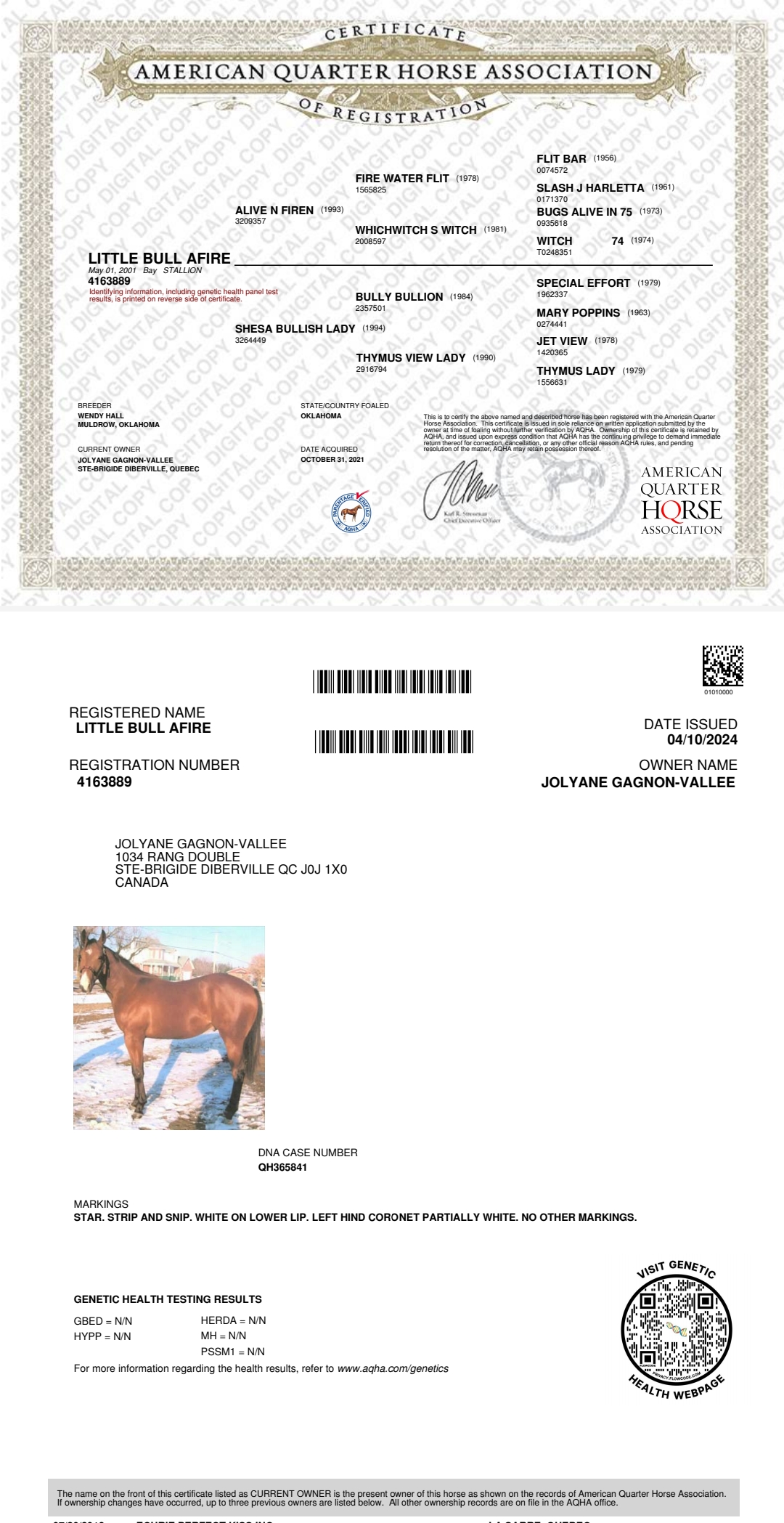 Nom de l'étalon / Name